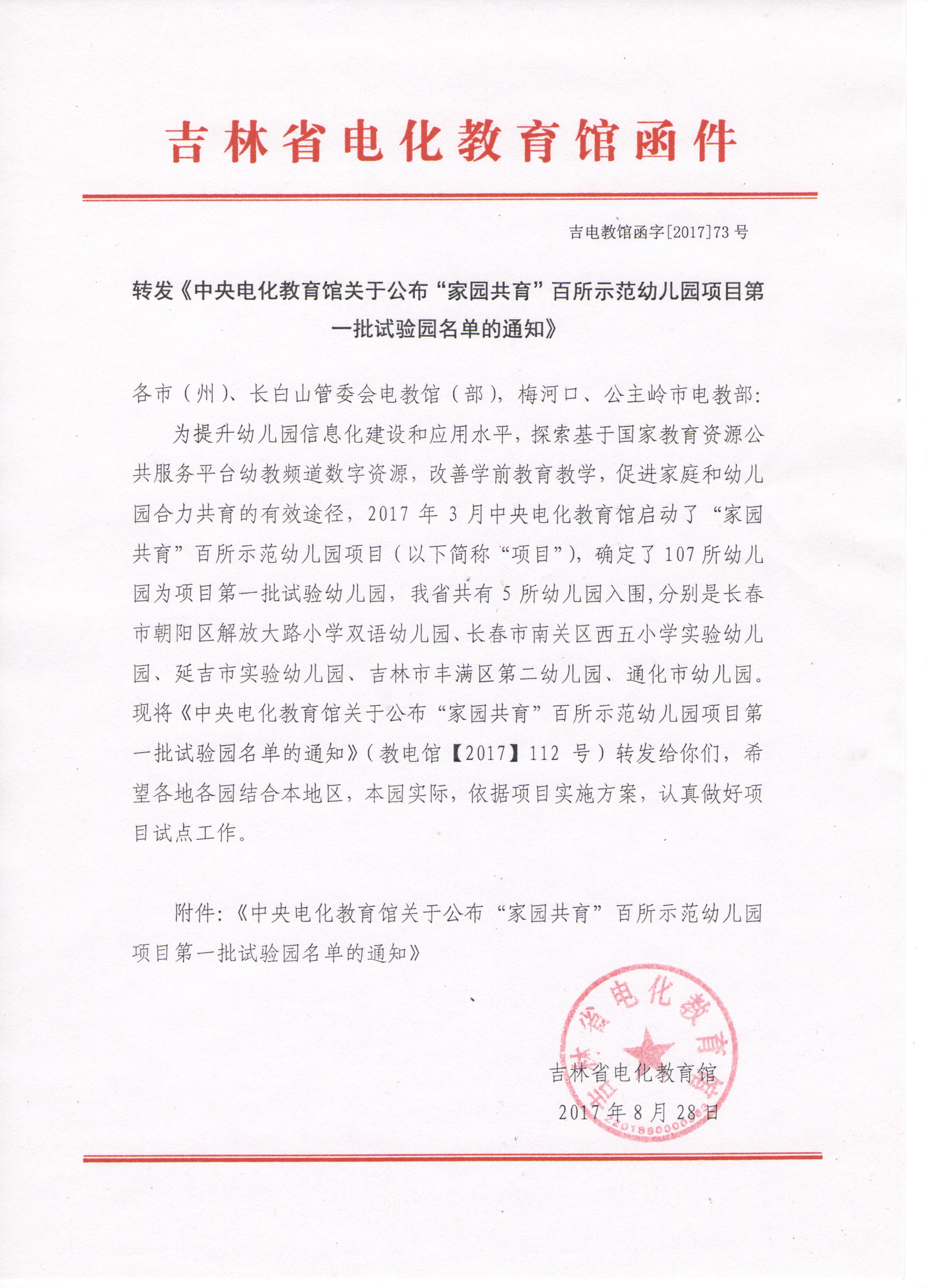 附件下载:中央电化教育馆关于公布“家园共育”百所示范幼儿园项目第一批试验园名单的通知