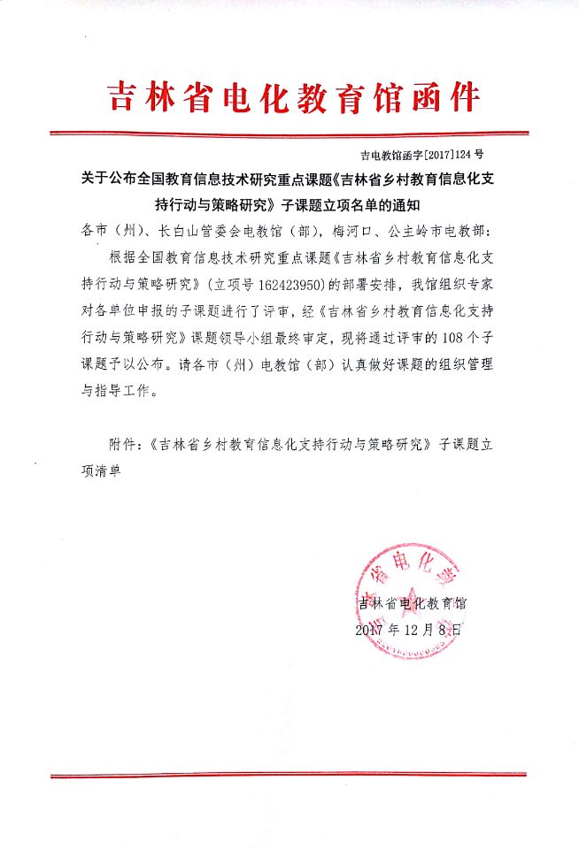 附件下载:《吉林省乡村教育信息化支持行动与策略研究》子课题立项清单