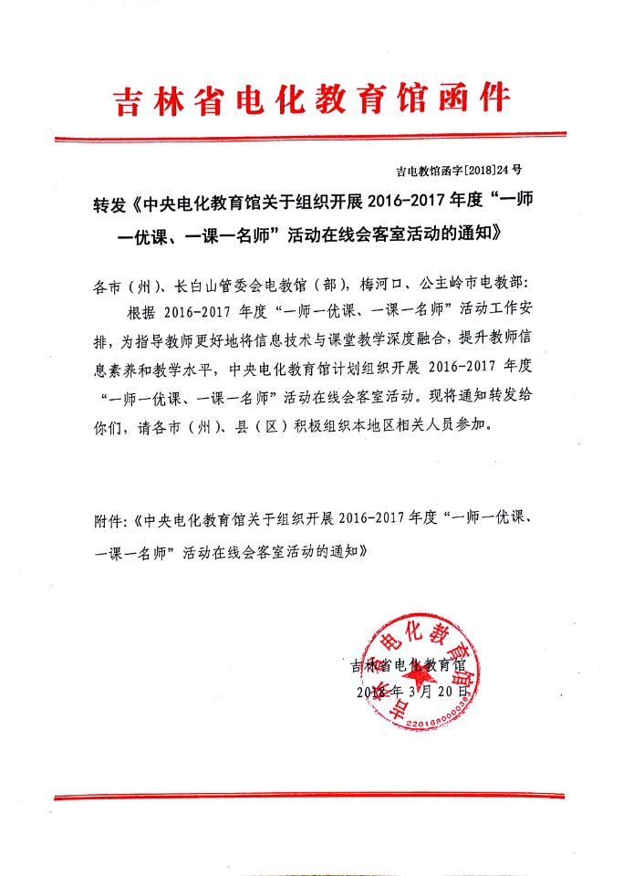 转发《中央电化教育馆关于组织开展2016-2017年度“一师一优课、一课一名师”活动在线会客室活动的通知》