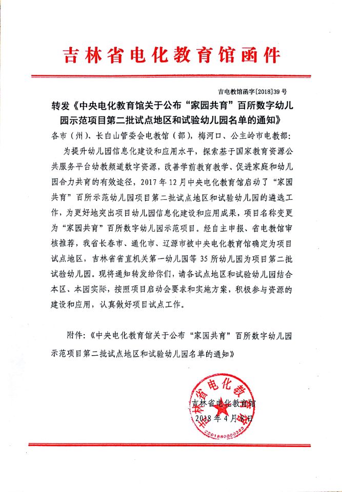 转发《中央电化教育馆关于公布“家园共育”百所数字幼儿园示范项目第二批试点地区和试验幼儿园名单的通知》