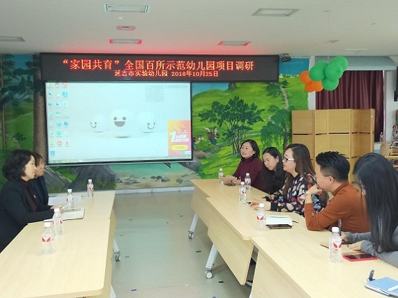 10月25日,“家园共育”全国百所示范幼儿园项目调研活动首站来到延吉市实验幼儿园,吉林省电化教育馆副馆长王�矗�吉林省电化教育馆教研部主任田宏,延边州电化教育馆馆长李明姬,全国“家园共育”数字幼儿园示范项目办公室东北三省项目组组长刘江南、副组长赵娜、辅导员历盈参加了此次活动。