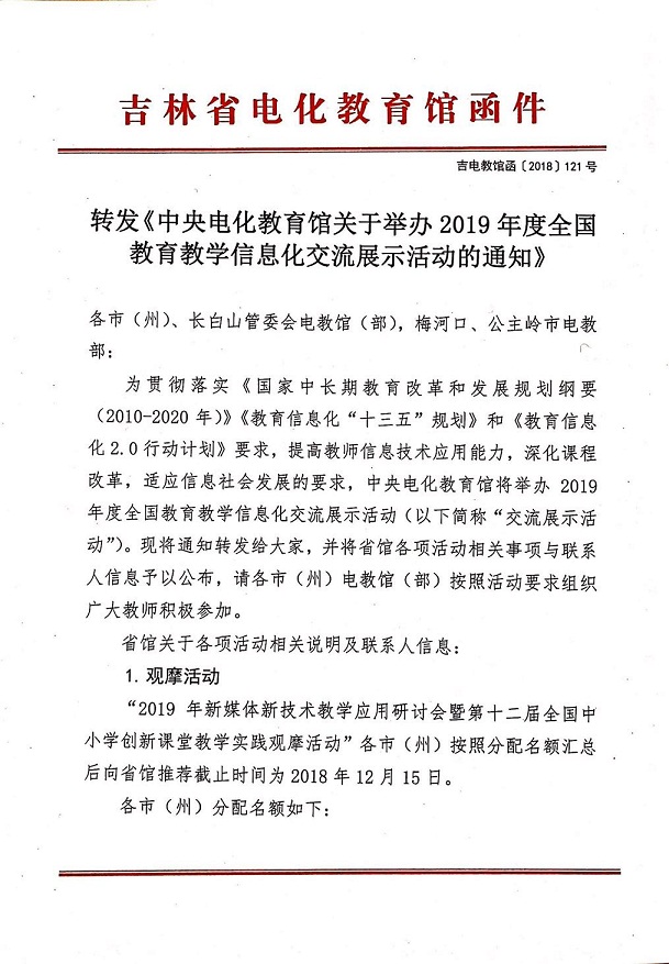 转发《中央电化教育馆关于举办2019年度全国教育教学信息化交流展示活动的通知》