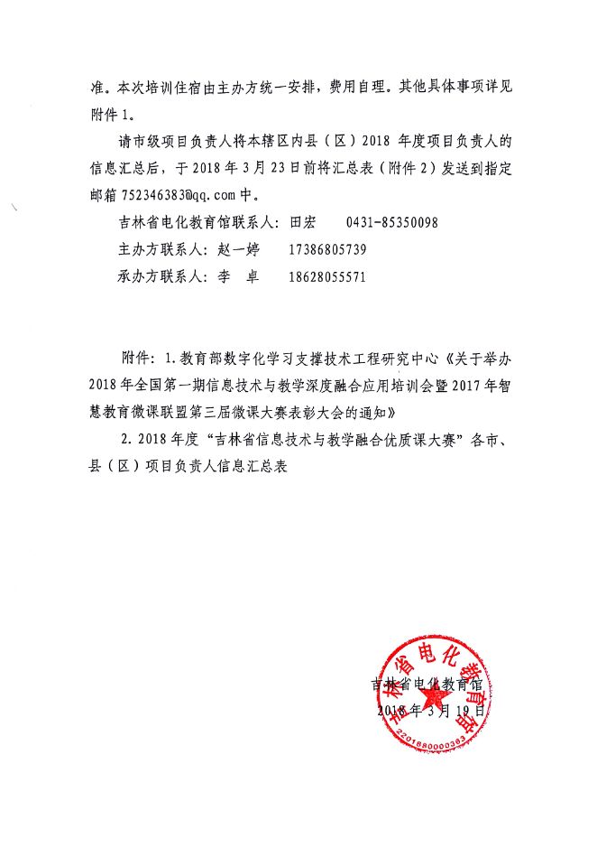 转发教育部数字化学习支撑技术工程研究中心 《关于举办2018年全国第一期信息技术与教学深度融合应用培训会暨2017年智慧教育微课联盟第三届微课大赛表彰大会的通知》