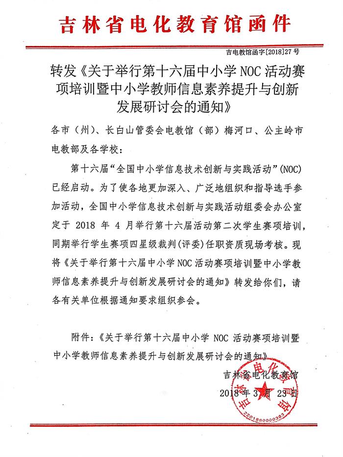 转发《关于举行第十六届中小学NOC活动赛项培训暨中小学教师信息素养提升与创新发展研讨会的通知》