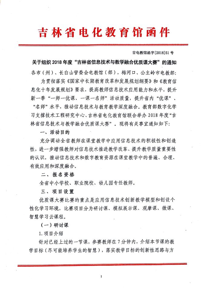 通知下载:《关于组织2018年度“吉林省信息技术与教学融合优质课大赛”的通知》