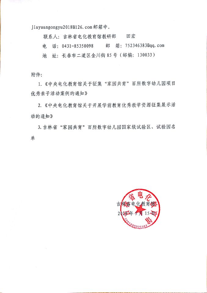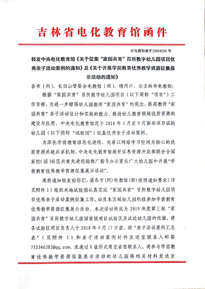 转发中央电化教育馆《关于征集“家园共育”百所数字幼儿园项目优秀亲子活动案例的通知》及《关于开展学前教育优秀教学资源征集展示活动的通知》
