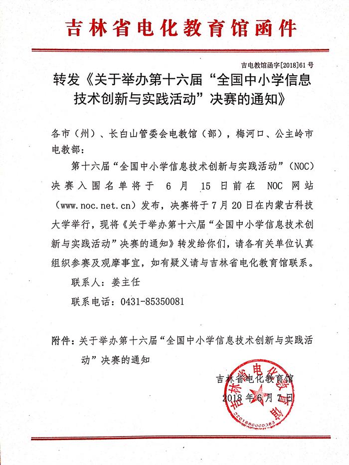 转发《关于举办第十六届全国中小学信息技术创新与实践活动决赛的通知》