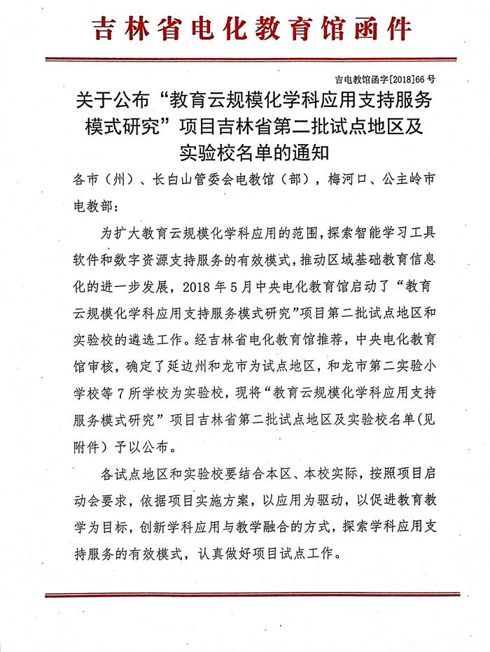 关于公布“教育云规模化学科应用支持服务模式研究”项目吉林省第二批试点地区及实验校名单的通知