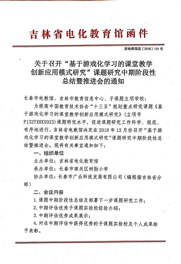关于召开“基于游戏化学习的课堂教学创新应用模式研究”课题研究中期阶段性总结暨推进会的通知