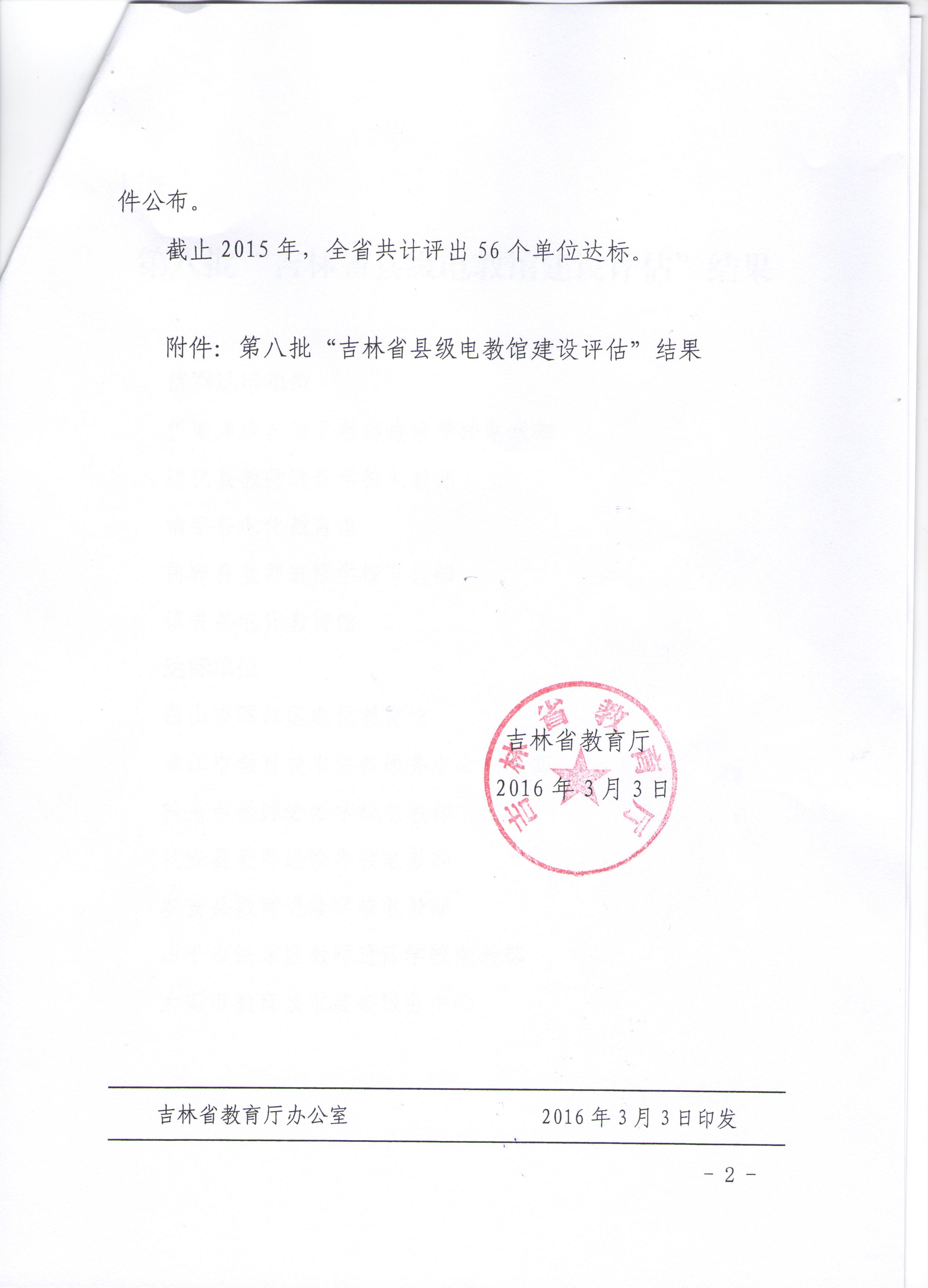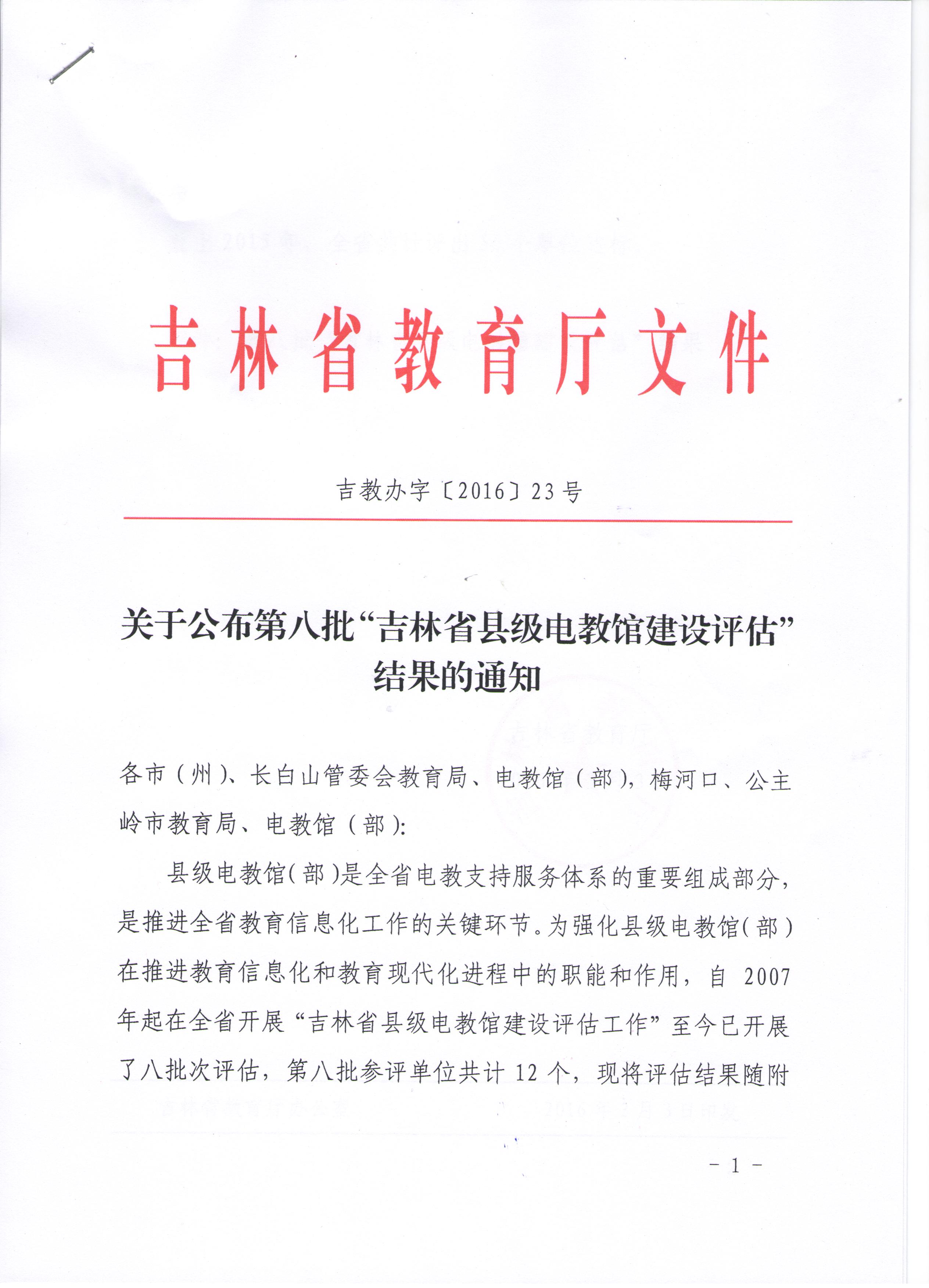 关于公布第八批“吉林省县级电教馆建设评估” 结果的通知