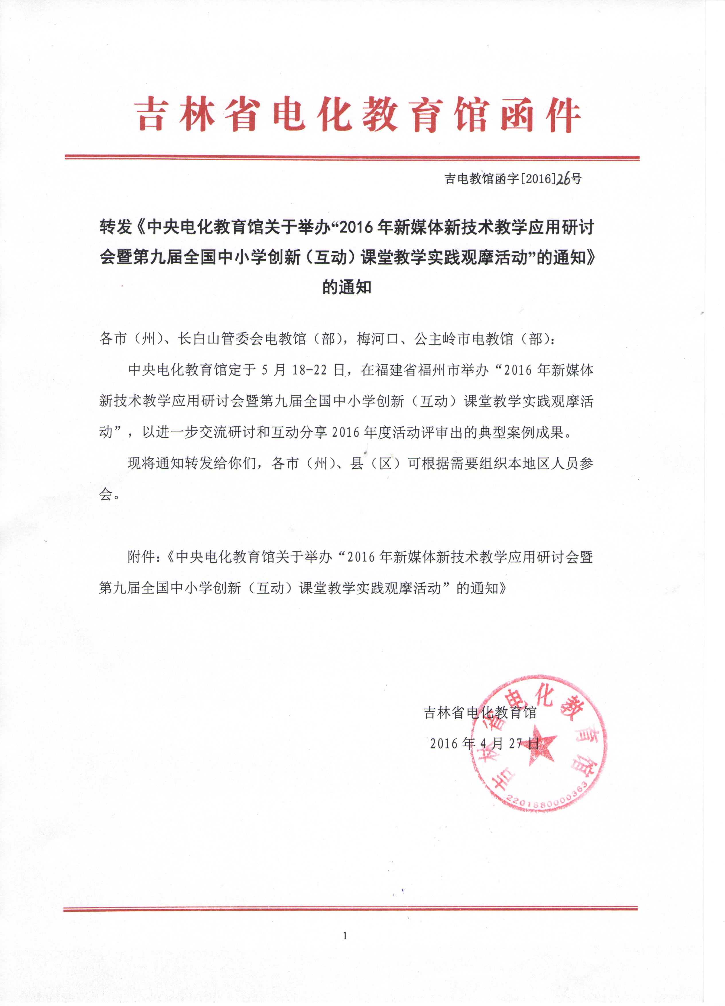 转发《中央电化教育馆关于举办“2016年新媒体新技术教学应用研讨会暨第九届全国中小学创新(互动)课堂教学实践观摩活动”的通知》的通知