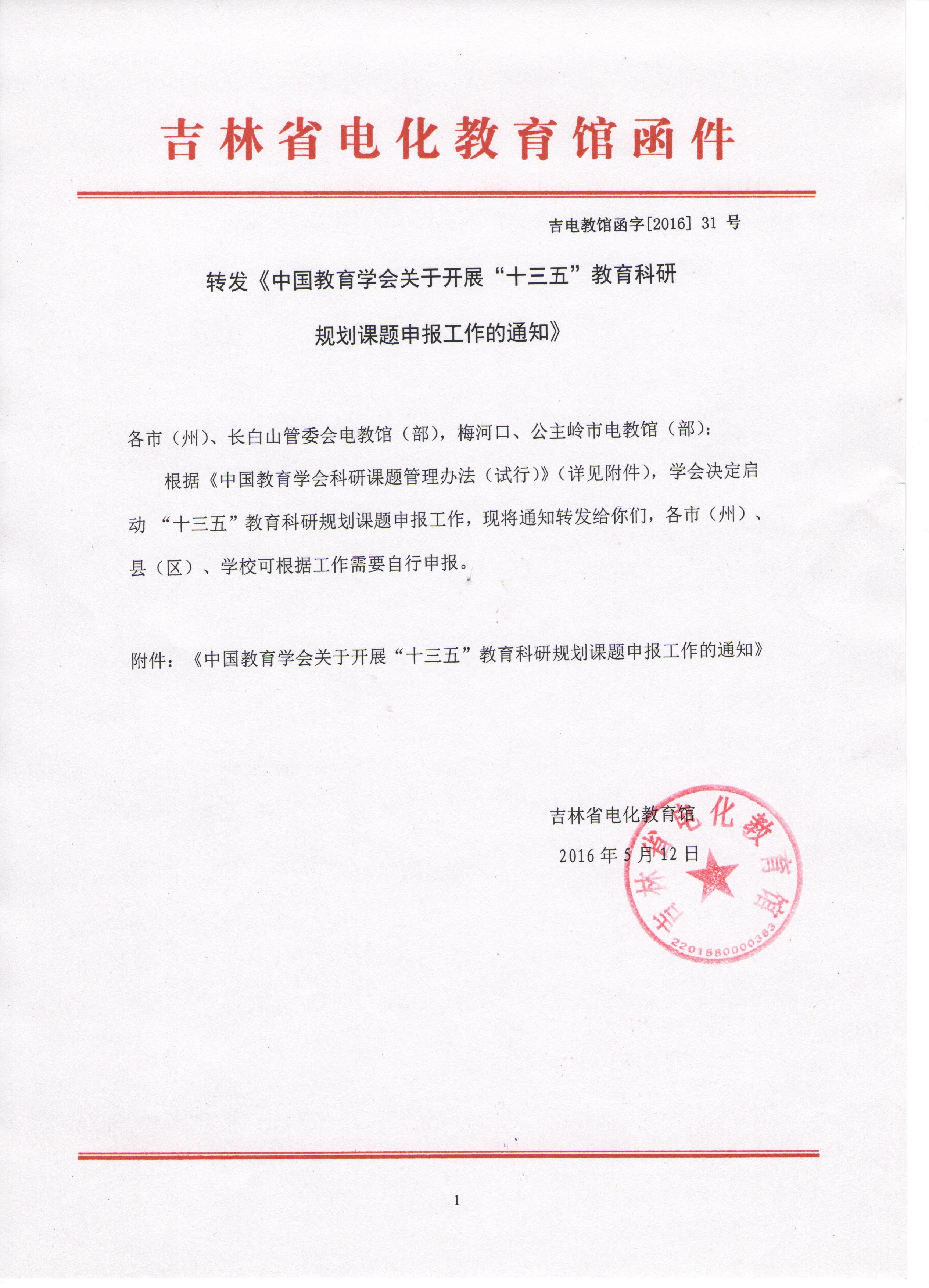 转发《中国教育学会关于开展“十三五”教育科研 规划课题申报工作的通知》