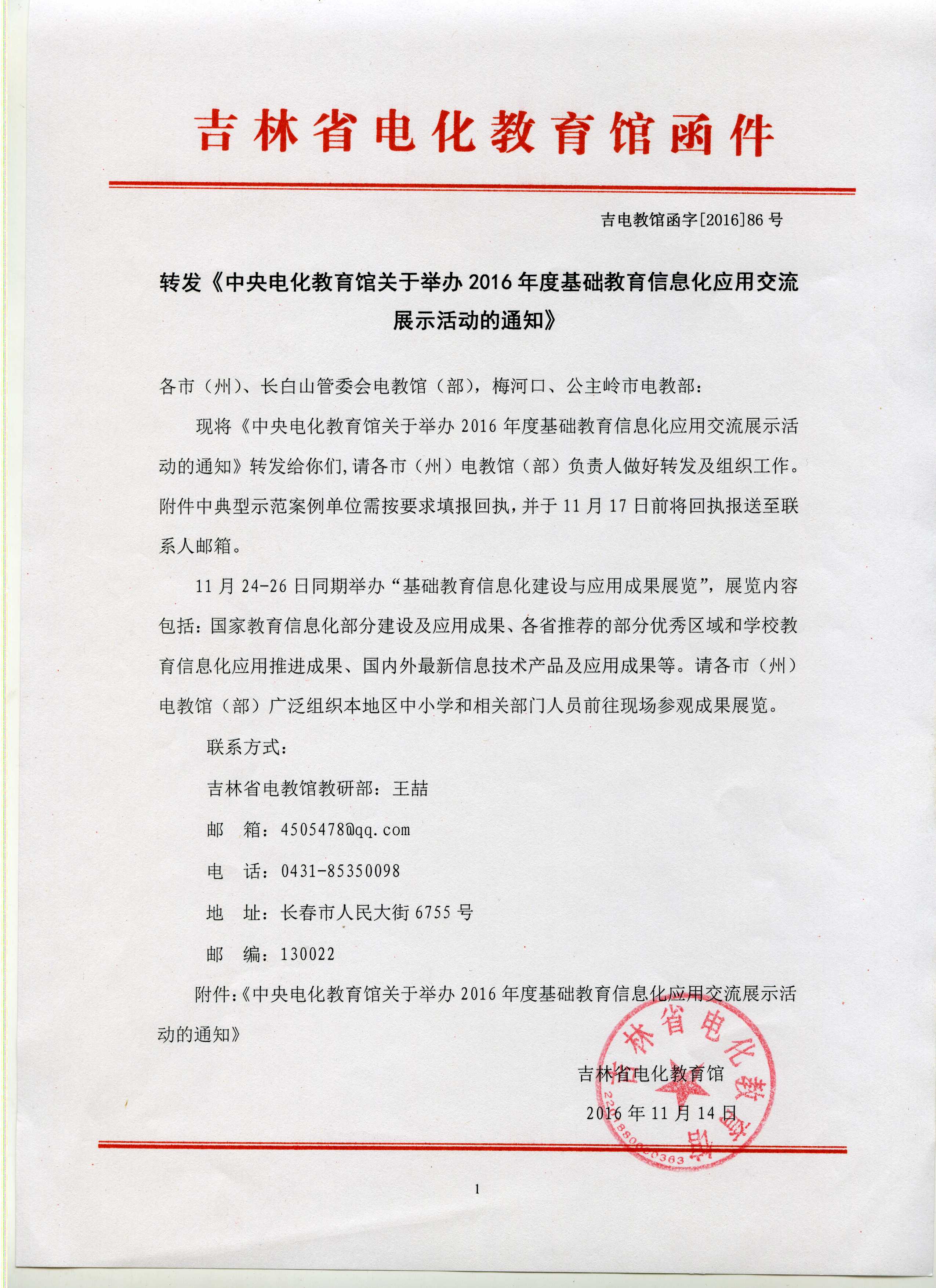 转发《中央电化教育馆关于举办2016年度基础教育信息化应用交流展示活动的通知》