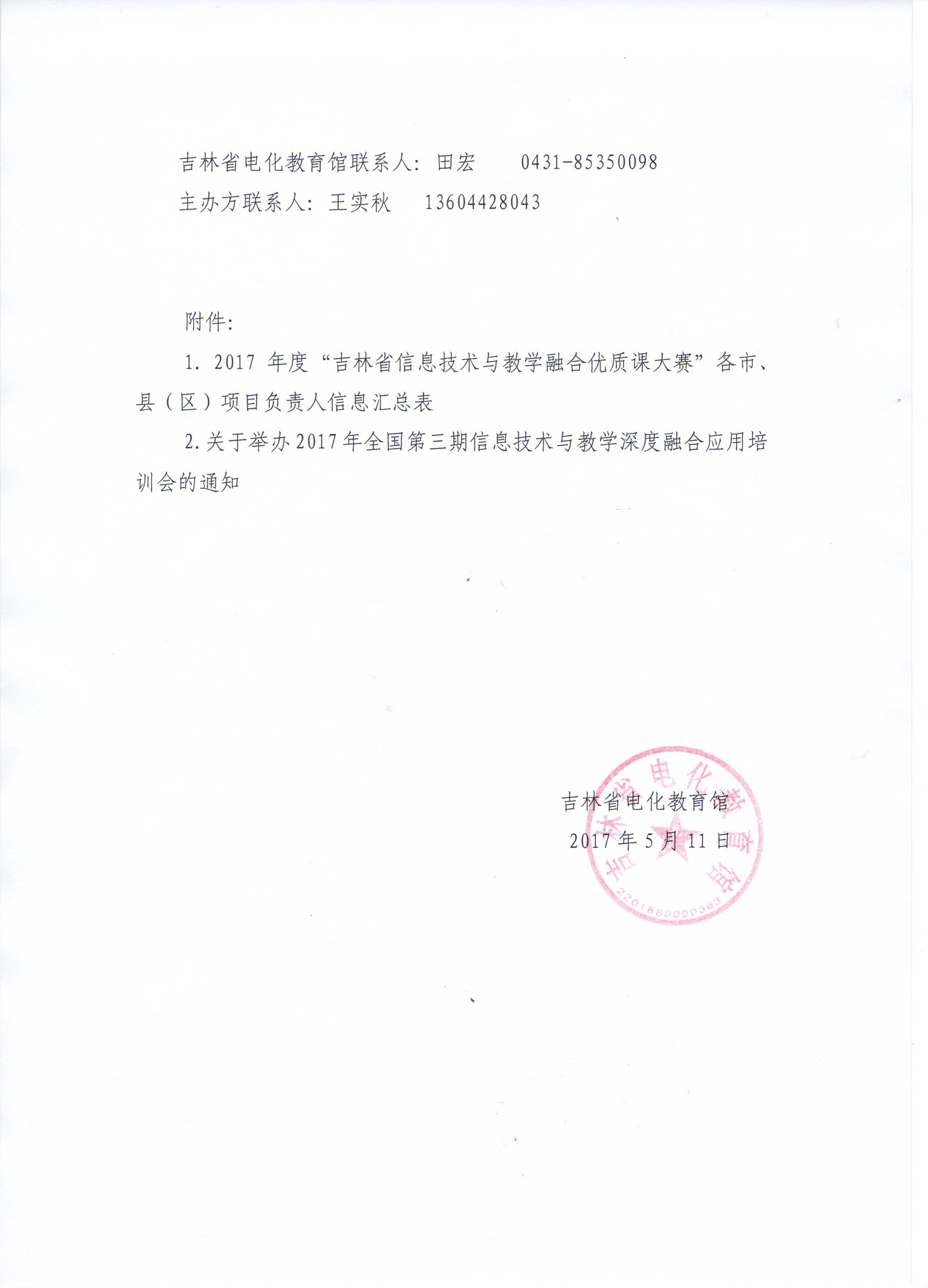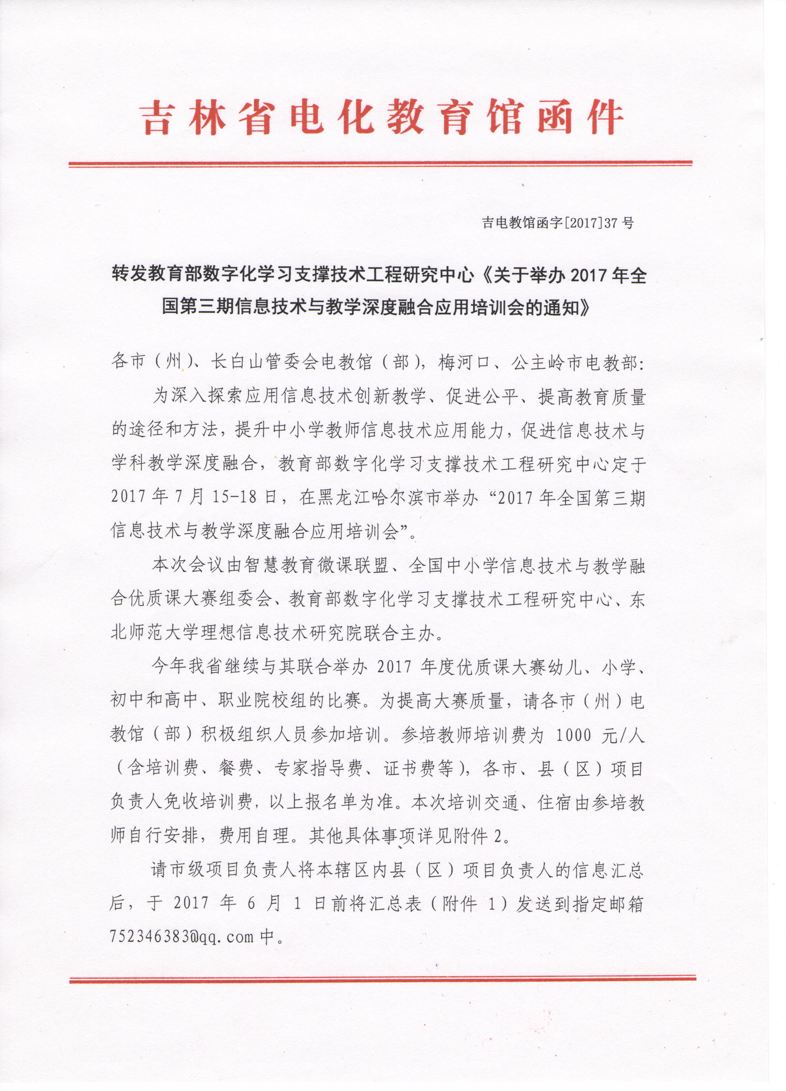 附件下载:关于举办2017年全国第三期信息技术与教学深度融合应用培训会的通知及项目负责人信息汇总表