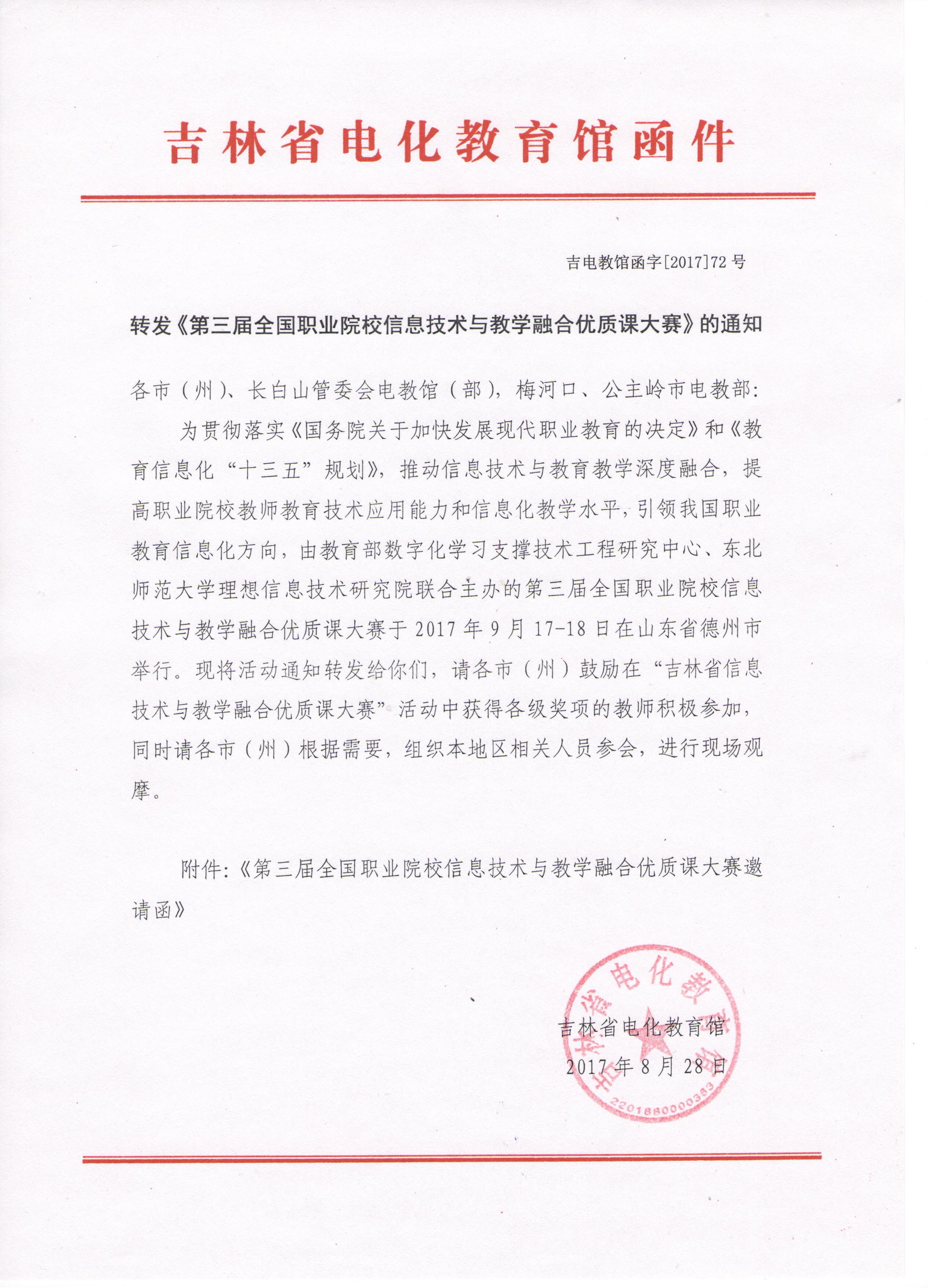 附件下载:第三届全国职业院校信息技术与教学融合优质课大赛邀请函