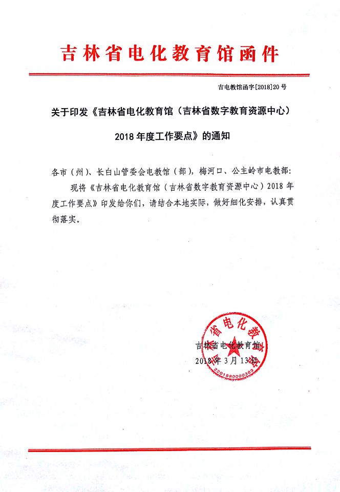 关于印发《吉林省电化教育馆(吉林省数字教育资源中心) 2018年度工作要点》的通知