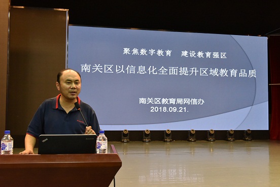 长春市南关区教育局网信办主任景颜双分享了南关区推进教育信息化工作的经验做法。