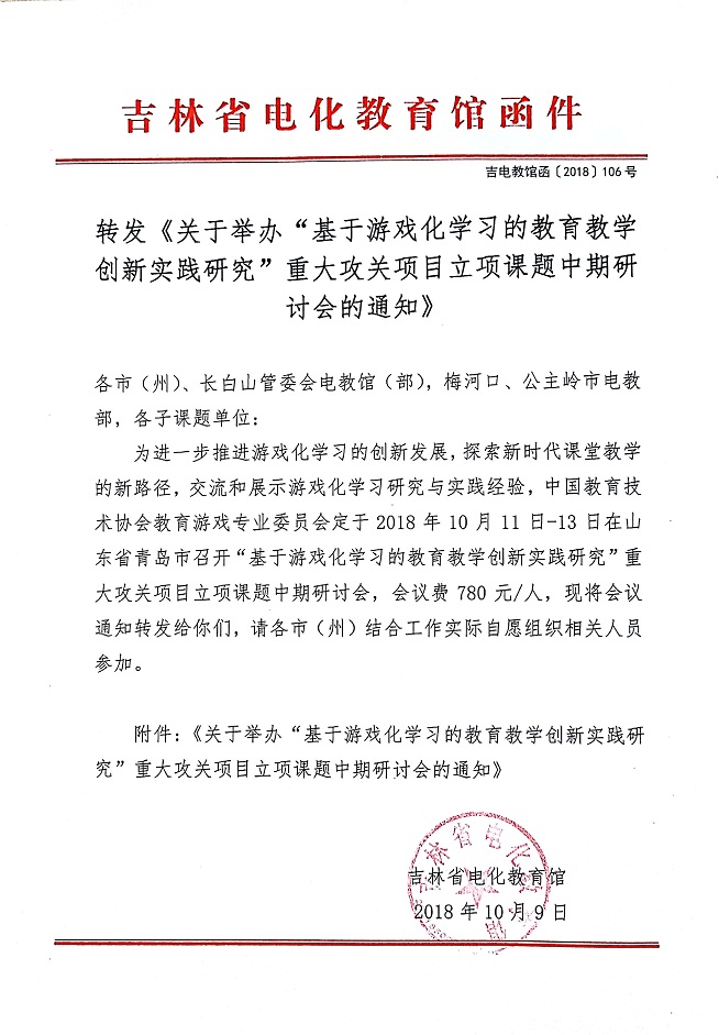 转发《关于举办“基于游戏化学习的教育教学创新实践研究”重大攻关项目立项课题中期研讨会的通知》