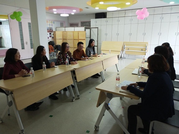 延吉市实验幼儿园“家园共育”项目负责人金美顺主任首先介绍了项目进展情况,实施项目过程中尝试了将游戏教育延伸到家庭教育之中,将亲子活动与幼儿园活动紧密结合在一起,在幼儿园中设立亲子作品展示区,积极组织老师参加家庭教育指导线上培训。
