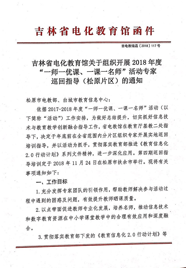 吉林省电化教育馆关于组织开展2018年度 “一师一优课、一课一名师”活动专家 巡回指导(松原片区)的通知