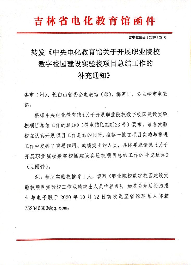 转发《中央电化教育馆关于开展职业院校数字校园建设实验校项目总结工作的补充通知》