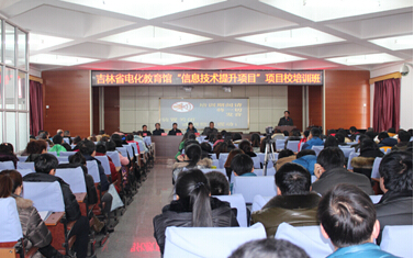 “国培计划(2014)”--中小学教师信息技术应用能力提升培训项目(中央电化教育馆)学习阶段已在去年年底结束。为使培训成果能够更具实践性和成果最大化, “信息技术应用能力提升培训项目”项目基地校培训班1月9日--12日在农安县教师进修学校举行,来自榆树、德惠、双阳、和长春市绿园区及农安县各中小学骨干教师代表共160多人参加了培训班。吉林省中小学继续教育办公室宋海英主任、吉林省电教馆陈钺副馆长、长春市继教办刘忠平老师和农安教育局孙国坡局长、曲晓光副局长、农安教师进修学校王兆文校长也亲临培训现场。