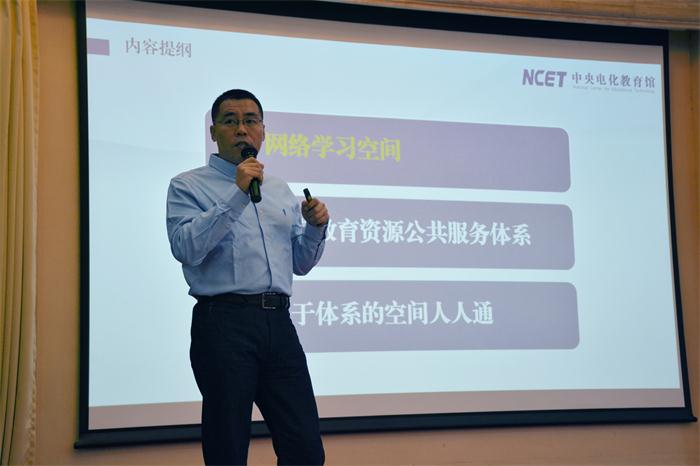 随后,中央电化教育馆综合教育资源部付涛老师从网络学习空间、国家教育资源公共服务体系、基于体系的空间人人通三个方面介绍了基于国家数字教育资源公共服务体系的空间人人通。