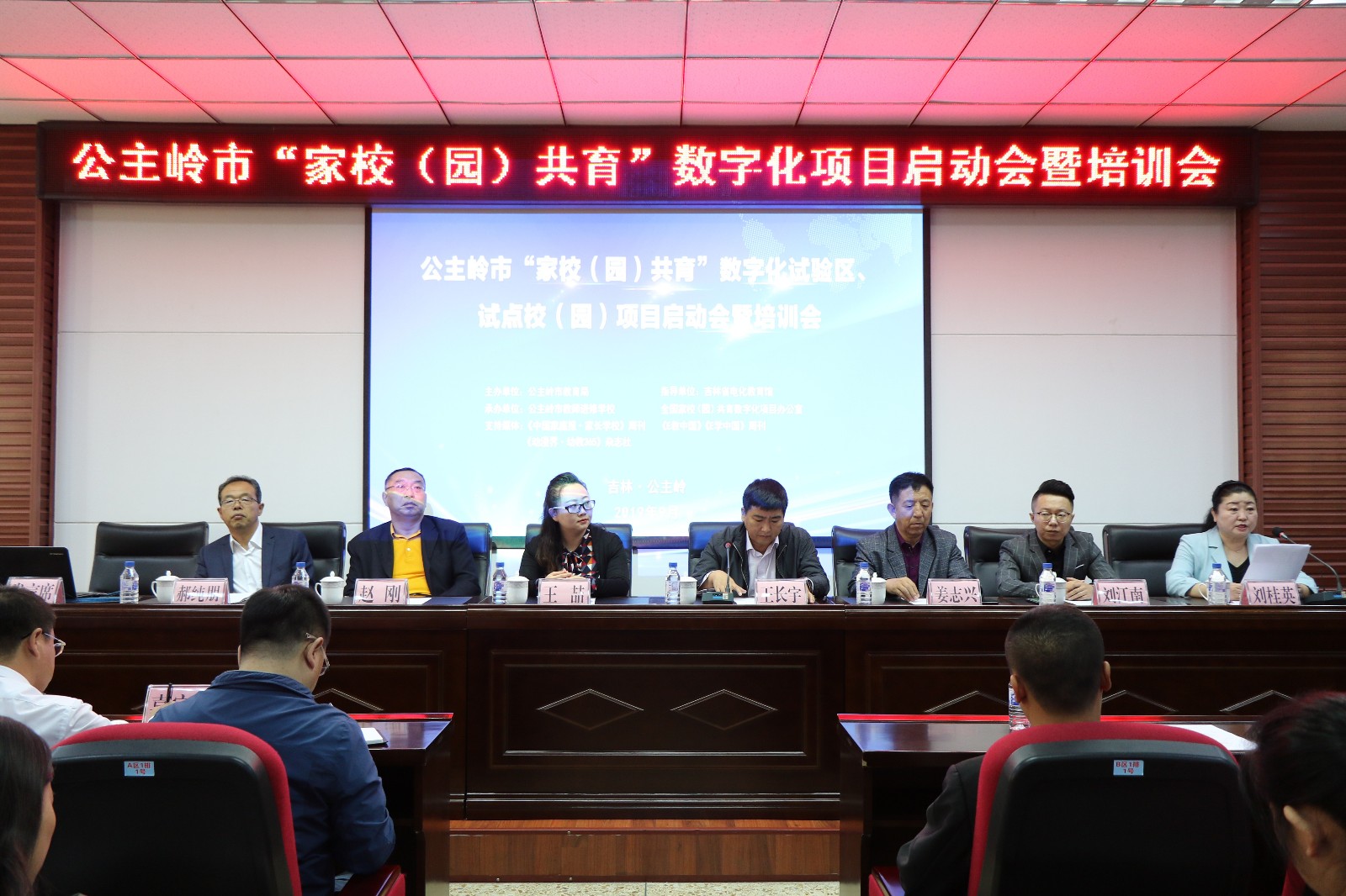 启动会由公主岭市教育局主办,公主岭市教师进修学校、全国“家校(园)共育”数字化项目办公室联合承办,吉林省电化教育馆为指导单位。吉林省电化教育馆副馆长王喆,公主岭市教育局副局长王长宇,东北师范大学家庭教育研究院院长赵刚,公主岭市教师进修学校校长郝纯朋、副校长刘桂英,全国“家校(园)共育”数字化项目东北三省办公室主任刘江南等出席了会议。伊通县委宣传部副部长李和受邀参加了会议。公主岭市教育局、教师进修学校相关部门领导,各中小学校长、幼儿园园长及项目负责人等近200人参加了会议。