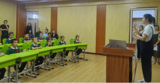 在镇赉县第二实验小学,调研组一行观摩了二实验小学以“一托二的”形式与建平乡民生小学、建平乡大岗小学共上的一节音乐课。三所学校的学生一起挥动小手,打着拍子,虽然不在同一间教室,但通过网络,使不同环境下的学生在同一位教师的指导下共享同一个课堂。通过同步上课,共享优质教育资源,解决了镇赉县农村学校课程课时开不足、开不齐、师资短缺的难题。