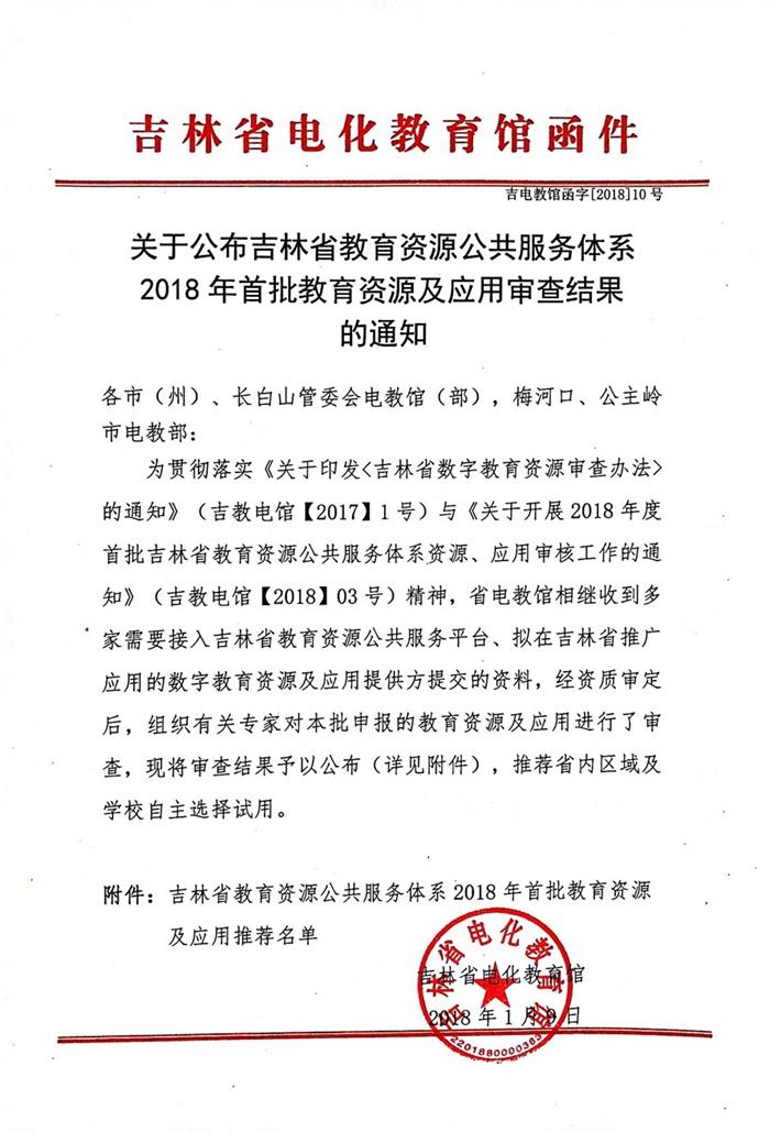 关于公布吉林省教育资源公共服务体系2018年首批教育资源及应用审查结果的通知