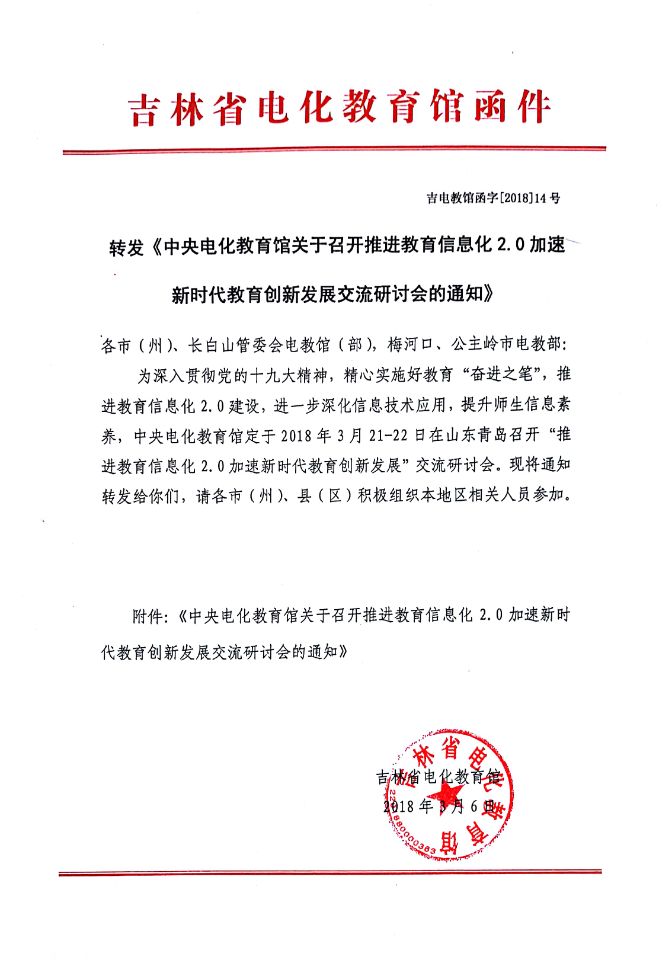 通知下载:《中央电化教育馆关于召开推进教育信息化2.0加速新时代教育创新发展交流研讨会的通知》