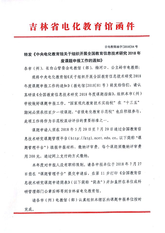 通知下载:《中央电化教育馆关于组织开展全国教育信息技术研究2018年度课题申报工作的通知》