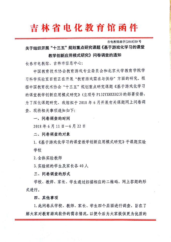 关于组织开展“十三五”规划重点研究课题《基于游戏化学习的课堂教学创新应用模式研究》问卷调查的通知
