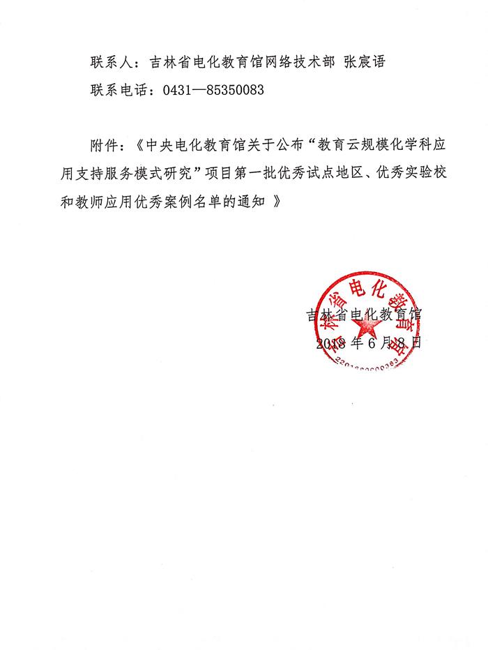 关于公布“教育云规模化学科应用支持服务模式研究”项目吉林省第一批优秀实验校和教师应用优秀案例名单的通知