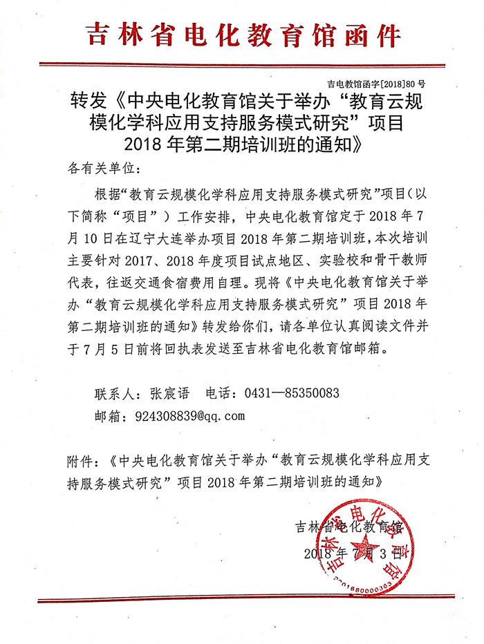 转发《中央电化教育馆关于举办“教育云规模化学科应用支持服务模式研究”项目 2018年第二期培训班的通知》