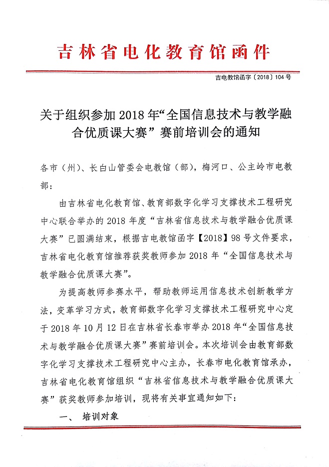 关于组织参加2018年“全国信息技术与教学融合优质课大赛”赛前培训会的通知