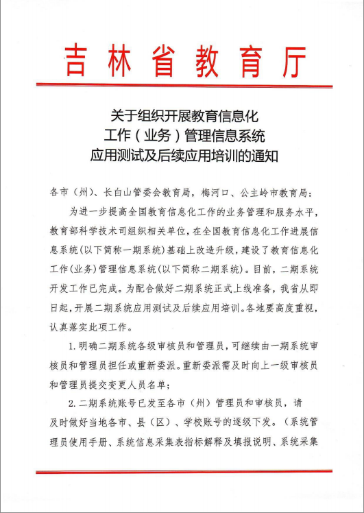 关于组织开展教育信息化工作(业务)管理信息系统应用测试及后续应用培训的通知