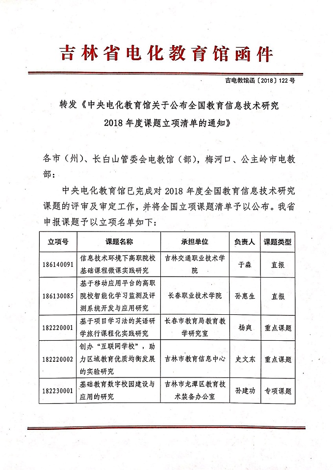 转发《中央电化教育馆关于公布全国教育信息技术研究 2018年度课题立项清单的通知》