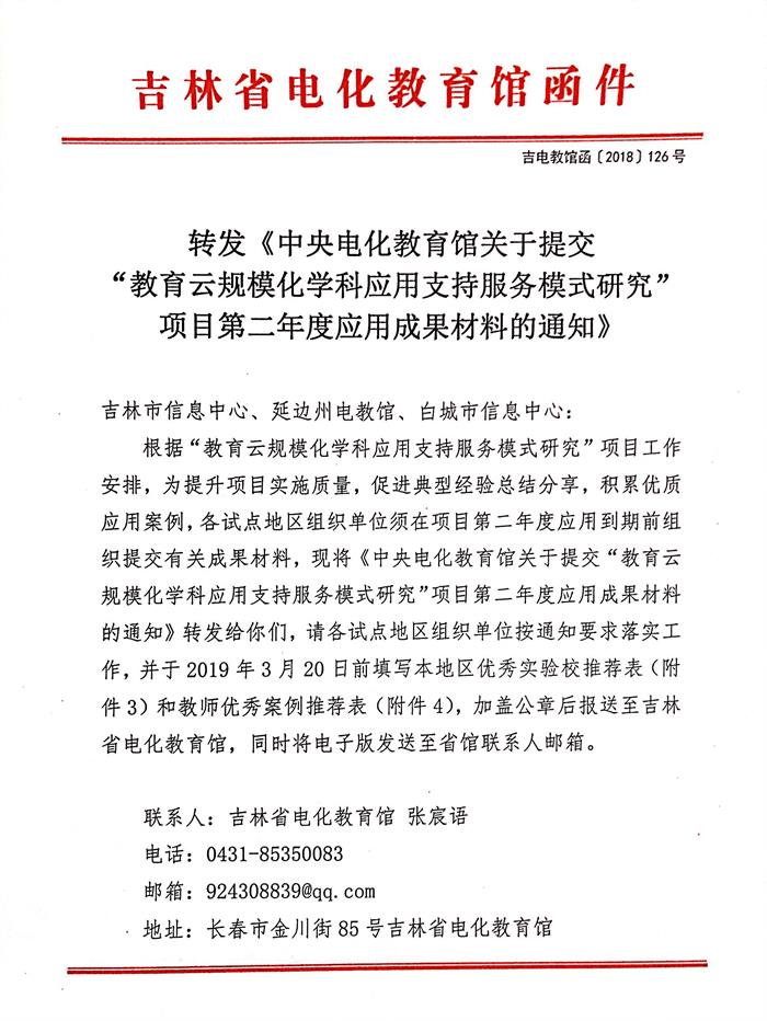 转发《中央电化教育馆关于提交“教育云规模化学科应用支持服务模式研究”项目第二年度应用成果材料的通知》