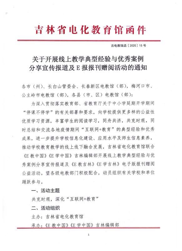 关于开展线上教学典型经验与优秀案例分享宣传报道及E报报刊赠阅活动的通知