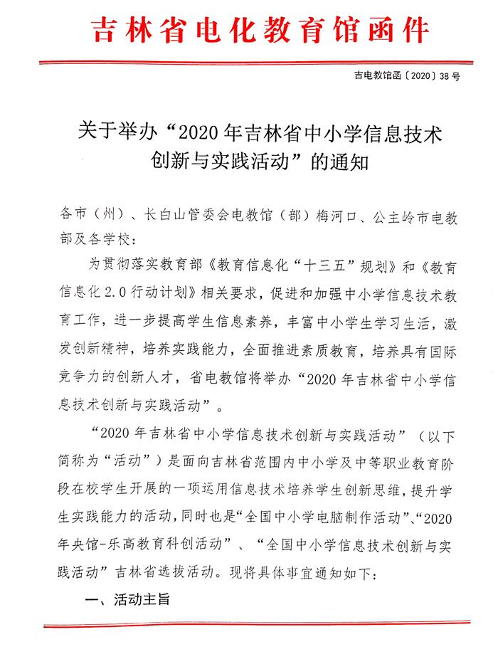 关于举办“2020年吉林省中小学信息技术创新与实践活动”的通知