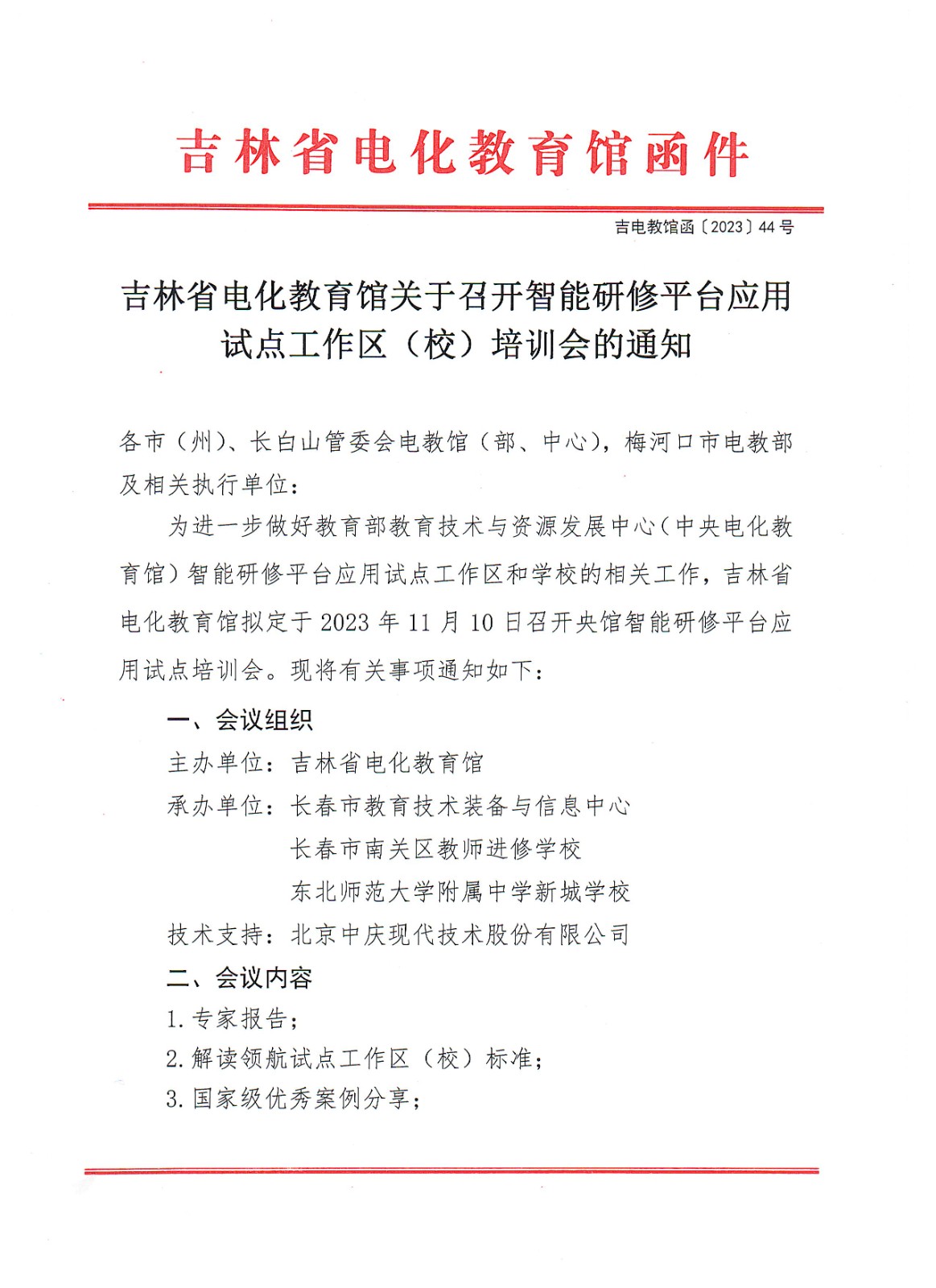 吉林省电化教育馆关于召开智能研修平台应用试点工作区(校)培训会的通知