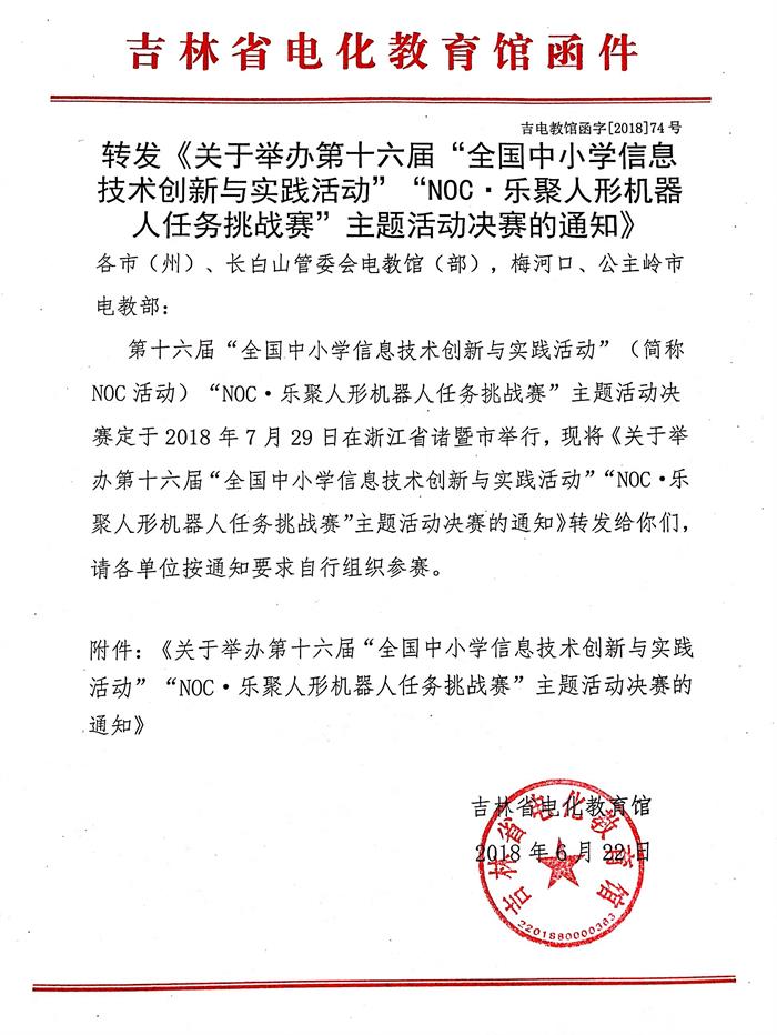 转发《关于举办第十六届“全国中小学信息技术创新与实践活动”“NOC・乐聚人形机器人任务挑战赛”主题活动决赛的通知》