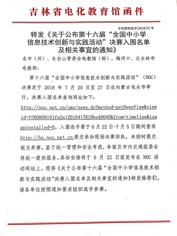 转发《关于举办第十六届“全国中小学信息技术创新与实践活动”“NOC...